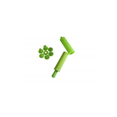 Tortadíszítõ 8 részes mûanyag 8606011401007 - Anyaga: mûanyag - Méretei: 23 cm hosszú 5 átmérõjû - Tartalma: 1 db henger, 1 db tömõ , 6 db különbözõ mintájú kinyomó fej