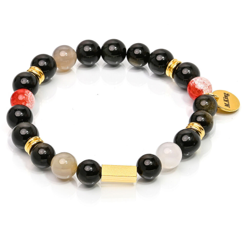 1 kép Engraved in Earth – Obszidián, achát és hegyikristály ásvány karkötő dobozban, gravírozható elemmel