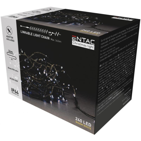 1 kép Entac karácsonyi 24m sorolható fényfüzér IP44 240LED meleg fehér adapter nélkül