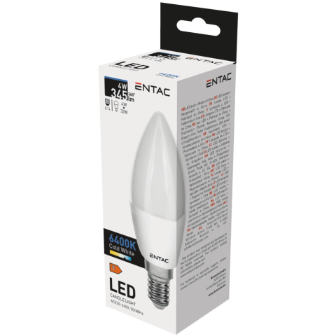 1 kép    Entac LED Candle E14 4W CW 6400K