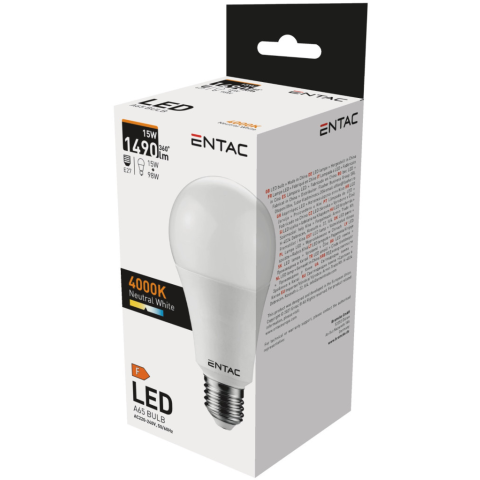Entac LED Globe E27 15W NW 4000K Az Entac izzók a hagyományos, izzókat helyettesítő magas hatékonyságú LED-ek. Elérhetők három színhőmérsékletben, 3000K meleg fényű, 4000K természetes fényű és 6400K hidegfényű változatokban. Alacsony fogyasztásuknak és