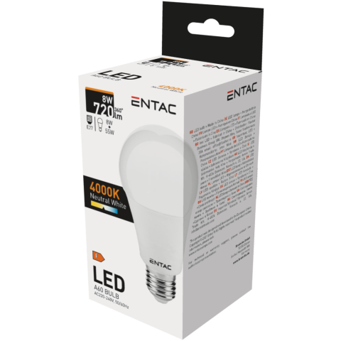Entac LED Globe E27 15W NW 4000K Az Entac izzók a hagyományos, izzókat helyettesítő magas hatékonyságú LED-ek. Elérhetők három színhőmérsékletben, 3000K meleg fényű, 4000K természetes fényű és 6400K hidegfényű változatokban. Alacsony fogyasztásuknak és