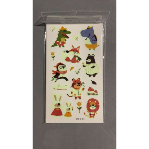 Aranyos erdei állatfigurákat tartalmazó tetoválás szett, például mókus, mosómedve, zebra, szamár, egér és más erdei elemek. A csomag 10 különböző mintát tartalmaz, csillámos kivitelben a még látványosabb hatásért.3 éves kor felett ajánlott.