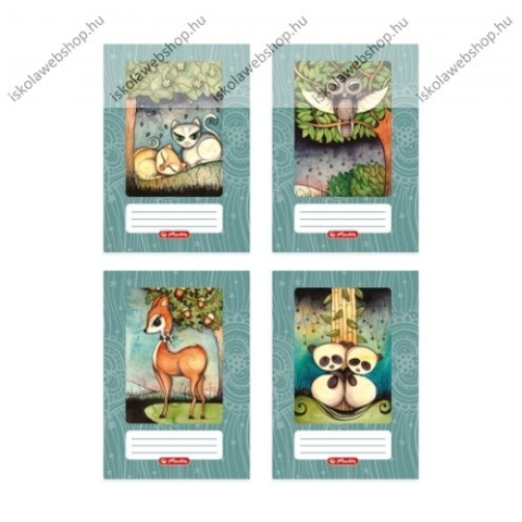 Termékleírás: - A5-ös méretű, 40 lapos iskolai füzet. - Erdőlakók mintával. - 300 g-os matt, mintás fedlappal. - 70g/m2-es hófehér belívvel. - margóval.