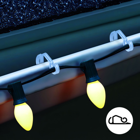 Ereszcsatorna akasztó szett – átlátszó, dupla – 50 db / csomag. Ezzel a kampó szettel egyszerűen és biztonságosan rögzítheti a karácsonyi fényfüzéreket, dekorációkat az ereszcsatornára, erkélykorlátra, kerítésre! Nincs szükség szegelésre, csavarozásra, egyszerűen a peremre akasztható a kampó és hatékonyan, gyorsan telepíthető például: a fényfüzér, fényfüggöny. Az erős és tartós anyagból készült kampó biztosítja a stabil és megbízható rögzí