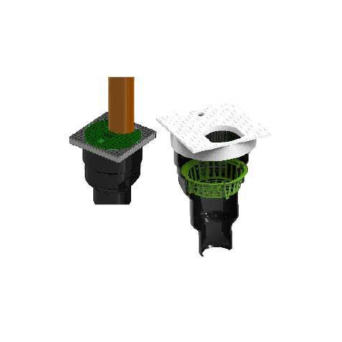 Ereszcsatorna bekötő vízelnyelő kültéri egyenes csatlakozású Összekötő elem az ereszcsatorna és a tartály bemeneti csövek között. Az ereszcsatorna alakjától és méretétől függően állítsa be a fedelet. DN 110, 125, 160. 250*250*420
