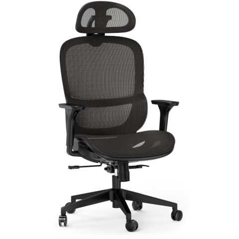 1 kép Ergonomikus irodai forgószék Neyo deréktámasz, fejtámla, háló, fekete
