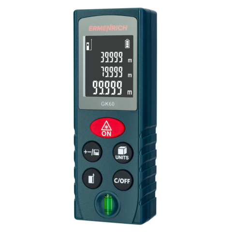 Az Ermenrich Reel GK60 lézeres mérő egy kiváló eszköz a távolságok pontos méréséhez, terület- és térfogatszámításhoz. Kompakt, könnyen kezelhető, tartós kialakítású, és ideális mind a szakmai tevékenységek, mind az otthoni felhasználás során. A mérőszalag 3 soros kijelzővel rendelkezik, ami könnyűvé teszi az adatok leolvasását.