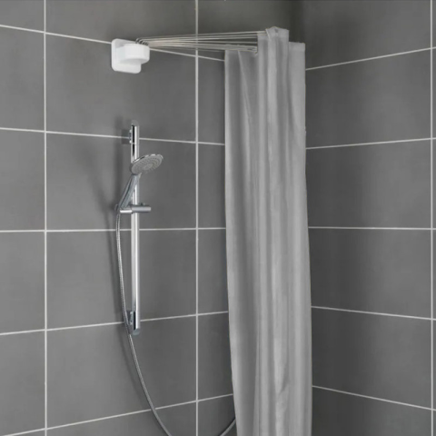 Az Ernyő alakú zuhanyfüggönytartó okos, helytakarékos megoldás, amely kifejezetten a kis fürdőszobák kényelmét szolgálja. A 7 darab, legyezőszerűen kihajtható tartórúd 144×88 cm-es ívet biztosít, így a mellékelt, 200×360 cm-es nagyméretű zuhanyfüggöny tök