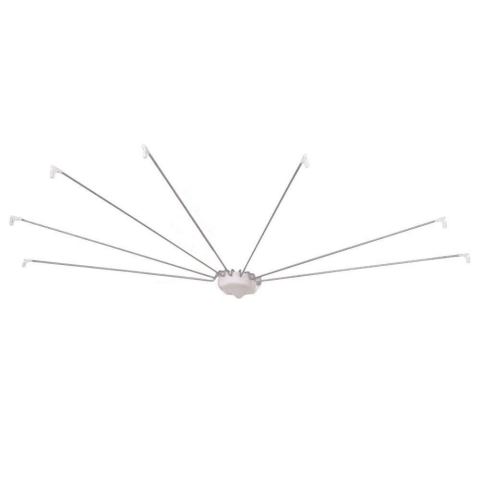 Az Ernyő alakú zuhanyfüggönytartó okos, helytakarékos megoldás, amely kifejezetten a kis fürdőszobák kényelmét szolgálja. A 7 darab, legyezőszerűen kihajtható tartórúd 144×88 cm-es ívet biztosít, így a mellékelt, 200×360 cm-es nagyméretű zuhanyfüggöny tök