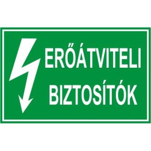 Erőátviteli biztosítók - műanyag, 90*60mm információs tábla, állvány 1 kép
