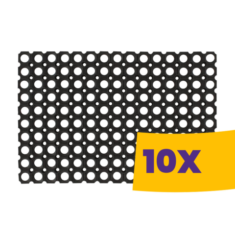 Strapabíró fekete lábtörlő 40x80 cm méretben. Ipari stílusú hatszögmintás kialakításával hatékonyan tisztítja a cipőtalpat, miközben elegáns belépőt biztosít otthonod vagy üzleted számára. A lábtörlő felülete hatszögletű mintázatból áll, amely nemcsak