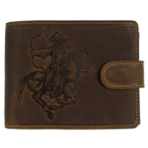 Kívül-belül kapcsos nyers marhabőr pénztárca lovas íjász nyomással