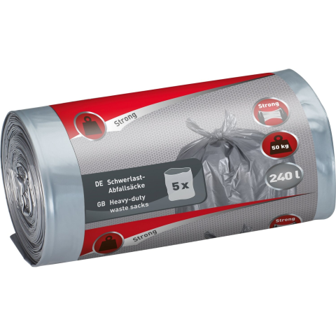 A nagy teherbírású szemeteszsák háztartási, kerti és ipari hulladékok ártalmatlanítására használható. Rendkívül szakadásálló Linothene anyagának köszönhetően a zsák nagyon ellenálló, és nagy, nehéz vagy szögletes tárgyak gyűjtésére és tárolására is használható. Űrtartalma 240 l. A csomag tekercsenként 5 darabot tartalmaz.