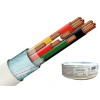 Rézeres, erősített biztonságtechnikai kábel, 2 db vastag és 12 db vékony ér A kábel főbb jellemzői 2 vastag + 4 vékony szigetelt, különböző színű, sodrott réz ér. Vastag erek névleges érkeresztmetszete: 0.5 mm2. Vékony erek névleges érkeresztmetszete: 0.22 mm2. Tömör árnyékolás. Alufólia belső borítás. Fehér PVC külső köpeny. 100 méter / tekercs.