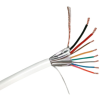 Rézeres, erősített biztonságtechnikai kábel, 2 db vastag és 12 db vékony, sodrott ér A kábel főbb jellemzői 2 vastag + 6 vékony eres (erősített) biztonságtechnikai kábel. Rézzel bevont alumínium, sodrott, belső erek (CCA). Belső erek: 16 x 0.20 mm (0.5 mm2) + 7 x 0.20 mm (0.22 mm2). HDPE érszigetelés. Fehér színű PVC köpeny. Alufólia árnyékolás. Külső átmérő: 5.2 mm. 100 m / tekercs kiszerelés, fóliázva.