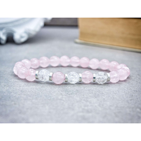 Erósz rózsakvarc és hegyikristály ásvány karkötő