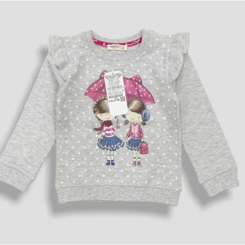 Nyomott mintás, normál vastagságú, puha, vállánál fodrokkal díszített hosszú ujjú lány pulóver. Kényelmes viselet a mindennapokon, akár az óvodában is. Teljes hossz: 38 cm Ujjhossz (nyaktól): 42 cm Ujjhossz (varrástól): 36 cm Szélesség: 31 cm Márka: BRE