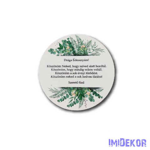 1 kép Esküvői 9,5cm kör - Drága Édesanyám - Szerető Fiad