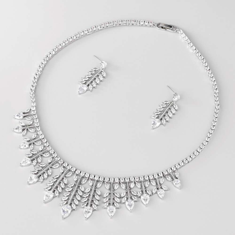 1 kép Esküvői/alkalmi luxus ékszerszett levél alakú CZ kristályokkal, platina bevonattal (0758.)