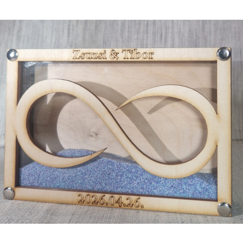 Ez az elegáns homokceremónia készlet végtelen szimbólumokkal díszítve tökéletes választás az esküvői ceremónia különleges pillanatainak megörökítésére. Az egyedi gravírozott végtelen jelképek átadják az örök szerelmet és az