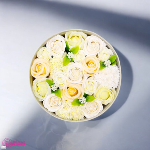 1 kép Esküvői Fehér Szappanvirág kerek doboz