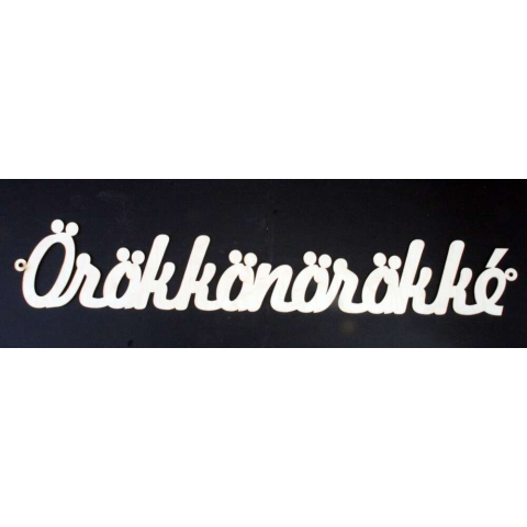 Az esküvői dekoráció nélkülözhetetlen eleme az elegáns "Örökkön" felirat. Ez a termék, amit lézergravírozással készítünk, tökéletes választás az asztalfőn ülő házaspár feje fölé helyezésre. A 4mm vastag, natúr rétegelt
