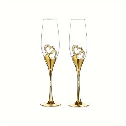 1 kép Esküvői pezsgőspohár szett arany szív motívummal – 200 ml XK277624-a
