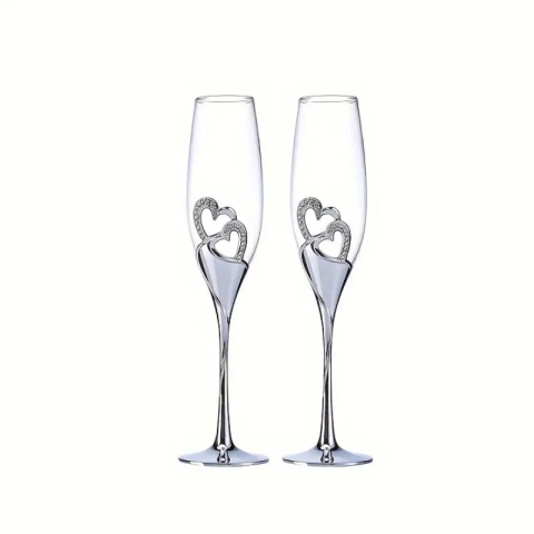 1 kép Esküvői pezsgőspohár szett ezüst szív motívummal – 200 ml XK277624