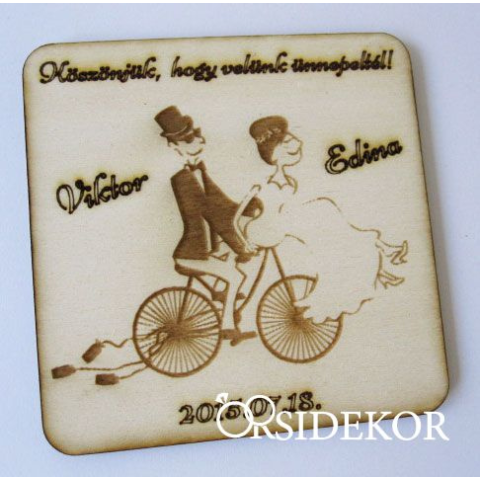 1 kép Esküvői poháralátét , köszönetajándék fából biciklis