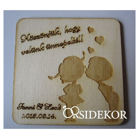 1 kép Esküvői poháralátét , köszönetajándék fából -esküvői pár motívummal