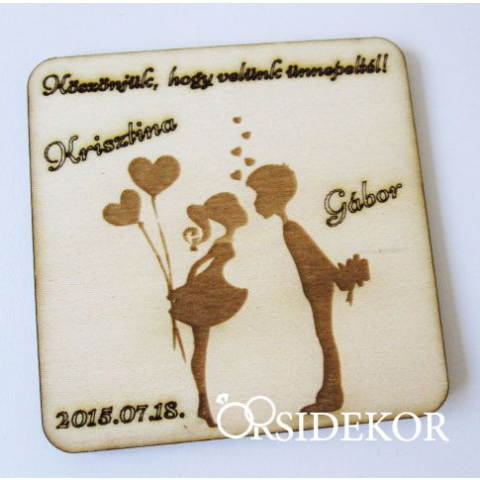1 kép Esküvői poháralátét , köszönetajándék fából figurás