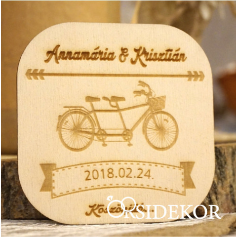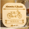 1 kép Esküvői poháralátét , köszönetajándék fából tandem bicikli