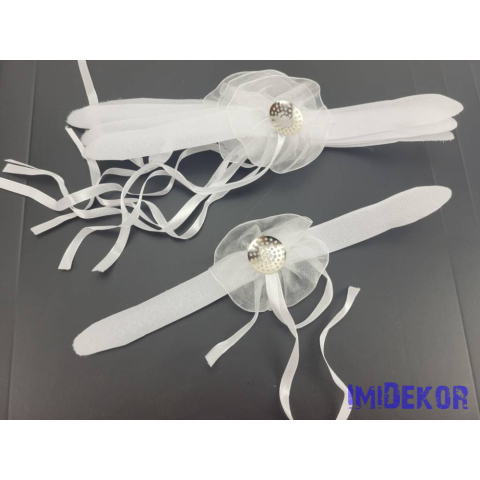 Esküvői tépőzáras kardísz alap fém középpel - Fehér dekorációs kellék 1 kép