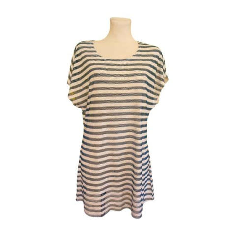 Ez az Esmara kék és fehér csíkos női strandruha egy nagyon praktikus, nyári darab. Anyaga vékony, áttesző, lyukacsos. Fazonja klasszikus egyenes szabású. Jól kombinálható bármilyen nyári kiegészítővel. Kifejezetten strandruhaként