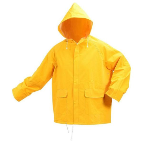 Esőkabát – L méret (PVC) TO-74626Sárga színű esőkabát, amely 70% PVC és 30% poliészter anyagból készült, így vízálló és tartós viseletet biztosít. L méretben kapható, ideális mindennapi használatra esős időben.Jellemzők:Anyag: 70% PVC, 30% poliészterSzín: sárgaMéret: LCipzáras és külső patentos záródásÁllítható derék és kapucni2 külső zsebHúzható ujjvégek a jobb illeszkedésértHátsó szellőző rendszer a kényelmes viselet érdekébenFedezd fe