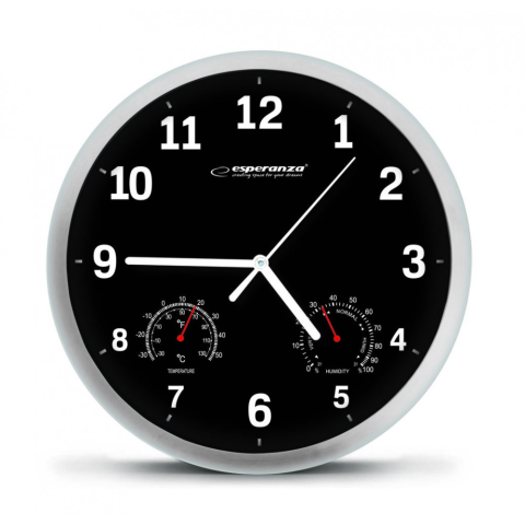 Ez az óra nem csak a pontos időt mutatja, hanem a szobahőmérsékletet és a páratartalmat is. Rendkívül elegáns és stílusos kialakításának köszönhetően kiválóan alkalmas lakások, irodák, üzletek vagy éttermek díszítésére. Átmérő: 25 cm Vastagság: 3,6 cm