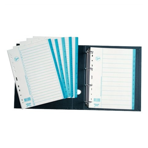 Regiszter, karton, A4, A-Z, ESSELTE, fehér - egyszerű megoldás az iratok jobb és pontosabb tárolása és előkeresése érdekében Gyártó/első EU forgalmazó elérhetősége: LEITZ ACCO Brands GmbH & Co KG Siemensstr. 64, D-70469 Stuttgart, Germany https: