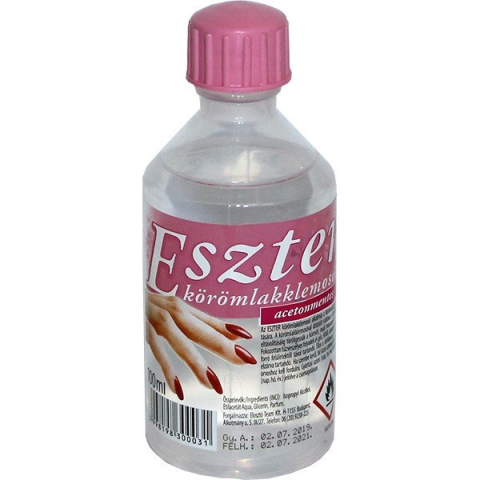 Eszter körömlakklemosó, aceton mentes 100ml Az Eszter körömkímélő illatosított körömlakklemosó alkalmas a körömlakk gyors eltávolítására. Tipus:aceton mentes Kiszerelés:100 ml/flakon