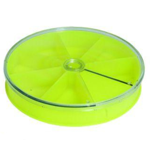Praktikusan, jól záródó szerelékes doboz 7 rekeszzel horgok, és . Kör alakú horgos doboz, 7 fakkal, forgatható tetővel. A tetőn lévő ablak mérete pontosan igazodik a fakkok szélességéhez, így a tároló rekeszekből nem szóródhatnak ki, és nem keveredhetn