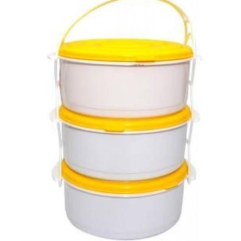 A 3 szintes műanyag ebédlődoboz élelmiszerek szállítására szolgál. Minden tál műanyag fedéllel van felszerelve, amely csattal könnyen zárható. Több színváltozatban kínáljuk. Egy tál térfogata 1 liter, Mérete:16 x 24 cm