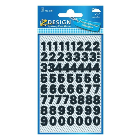 Etikett AVERY 3781 időjárásálló öntapadós számok fekete 2 íves időjárásálló fekete színű öntapadós számok.