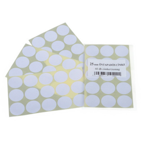 Etikett címke 25 mm kör 60 db/csomag Méret: átmérő: 25 mm Db/tasak: 60 öntapadós etikettcímkék általános használatra különböző méretekben