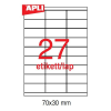 A/4-es íven található fehér etikettek 70x30mm-es méretben. 27 etikett/lap. 100lap/csomag. 2700 etikett/csomag A/4-es íven található fehér etikettek 70x30mm-es méretben. 27 etikett/lap. 100lap/csomag. 2700 etikett/csomag