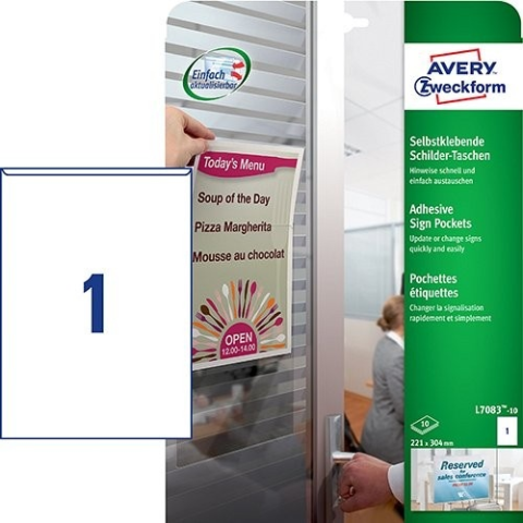 1 kép Etikett címke speciális L7083-10 öntapadó irattasak átlátszó 221x304mm 10 ív Avery