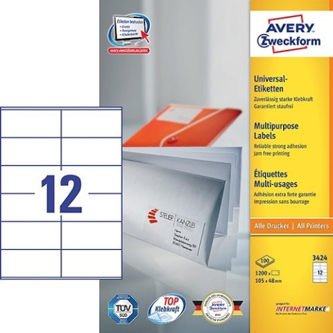 1 kép Etikett címke univerzális 3424 fehér 105x48mm Avery