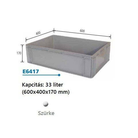 EURO szabványú, magas minőségű, műanyag (PP) tároló és szállító doboz Egymásra illeszthetőek. Sima és vékony kialakítású oldalfalai vannak. A műanyag ládák méretei, illeszkednek az euro raklapok méreteihez. A láda alja és oldalai zártak. Markolata: nyitot