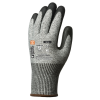 EUROCUT 5 SZÜRKE VÁGÁSBIZT. TENYERÉN FEKETE NITRILLEL_10 Szürke HHPE-vel, ásványi szálakkal, poliamiddal és elasztánnal erősített 13-mas kötésű védőkesztyű. A tenyerén fekete nitril habbal megerősítve. Kötött mandzsetta