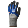 EUROCUT N505 VÁGÁSBIZTOS, 3/4 HÁT KÉK NITRIL + CSB RÉTEG_7 * 13-as kötésű, szürke, varrásmentes, vágásbiztos, HPPE, polianid és elasztán alapanyagú védőkesztyű * ökölcsontig kék sima nitril mártás + a tenyerén fekete speciális Sandy csúszásbiztos nit