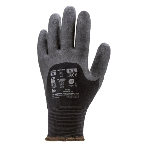 EUROICE FEKETE TÉLI SZERELŐKESZTYŰ__11 Fekete, varrás nélküli, poliamiddal erősített, 15-ös kötésű kesztyű Fekete akril béléssel Fekete PVC-HTP habbal az ökölcsontig Kötött mandzsettával Minősítéssel OEKO-TEX® STANDARD 100, CQ 1301/1, IFTH